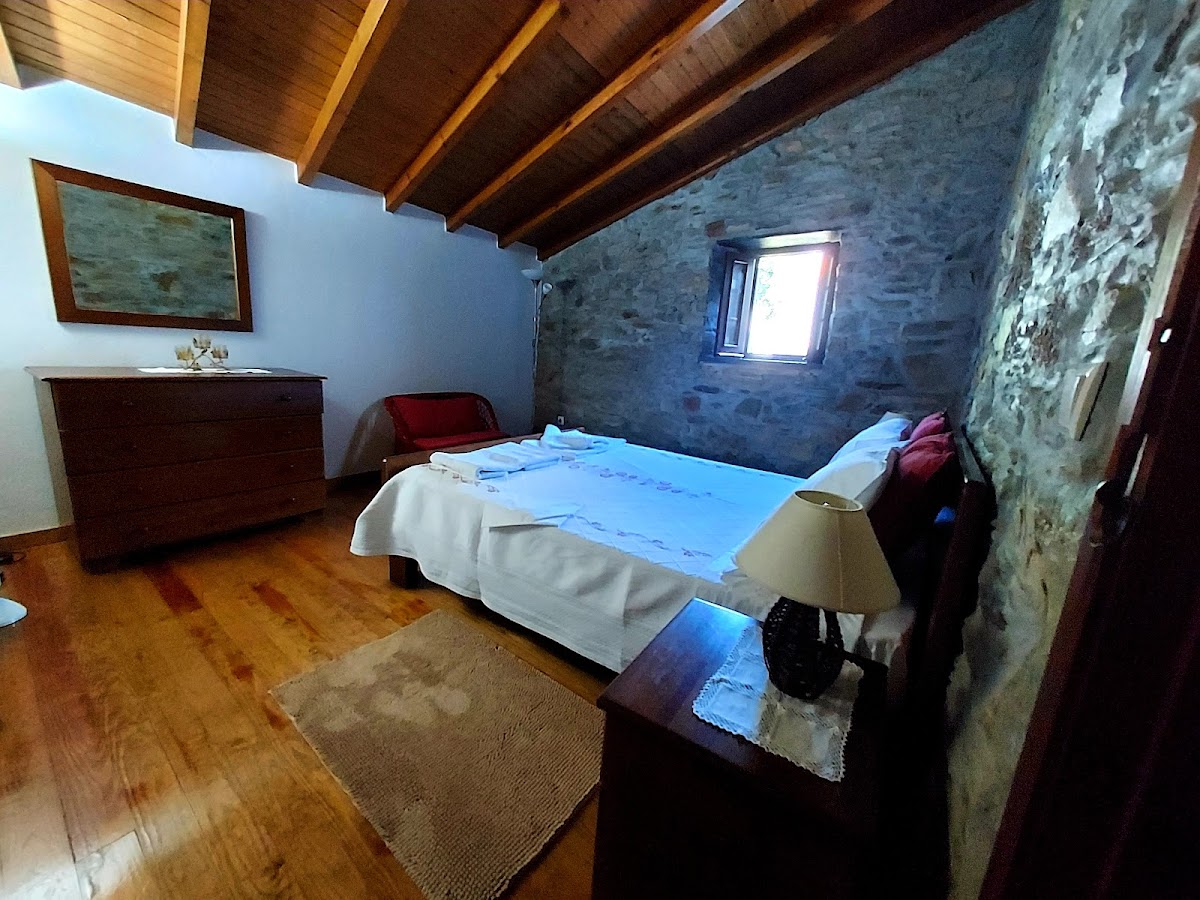 Casa muito acolhedora com camas para 6 casais um dos quartos ainda tem uma cama extra divã e um berço, tem ainda uma sala de estar com internet e TV e uma cozinha grande com tudo, espaço exterior muito agradável para desfrutar. Junto á casa tem lugar de estacionamento para 2 carros. A casa é rústica e muito bonita. A recepção foi muito calorosa que muito valorizamos.
